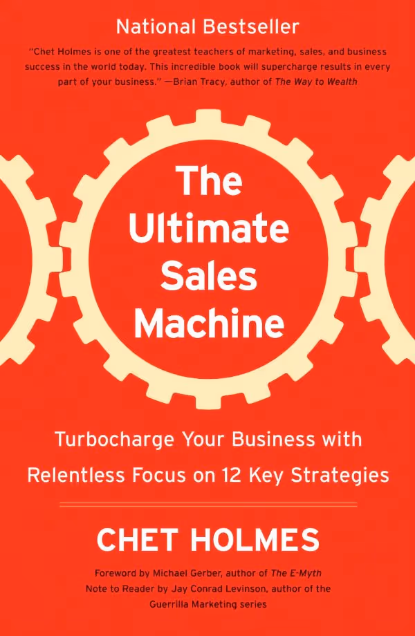 Back Cover: Chet Holmes helps his clients blow away both the competition and their own expectations. And his advice starts with one simple concept: focus! Instead of trying to master four thousand strategies to improve your business, zero in on the few essential skill areas that make the big difference. The Ultimate Sales Machine shows you how to tune up and soup up virtually every part of your business by spending just an hour per week on each impact area you want to improve. Like a tennis player who hits nothing but backhands for a few hours a week to perfect his game, you can systematically improve each key area.