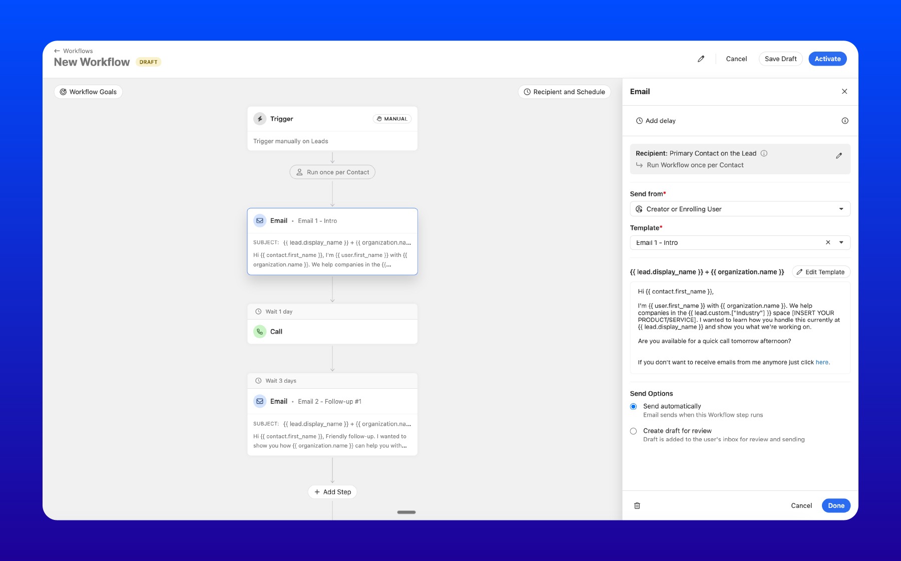 The "Template" Downside: There is one quirk you should know about. When building email sequences in Close, you cannot just free-write an email inside the workflow builder. You have to create a Template first, and then insert that template into the workflow.