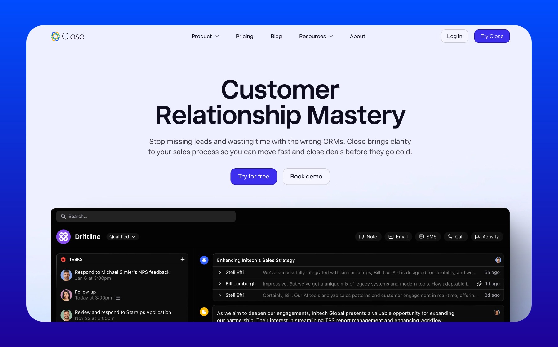 - SMS Capabilities: This is a cool feature. Close allows you to integrate text messaging into your workflows. While this isn't ideal for cold outreach (due to regulations), it is fantastic for following up with leads who have already engaged with you.