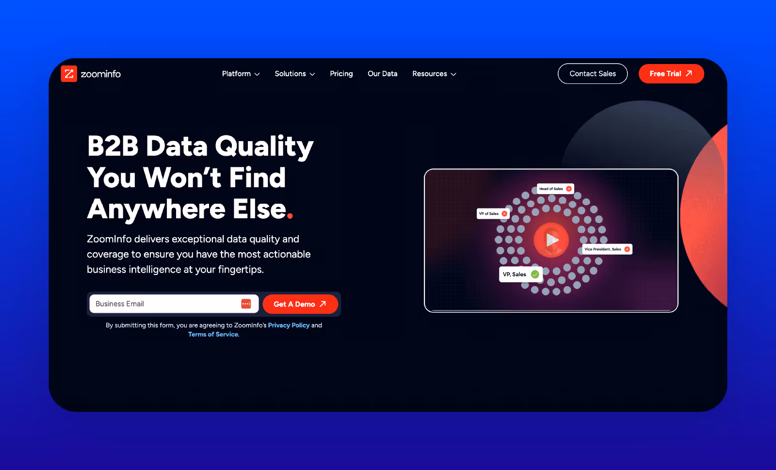 Last but not least is ZoomInfo. This tool is fantastic for finding both emails and cell phone numbers.