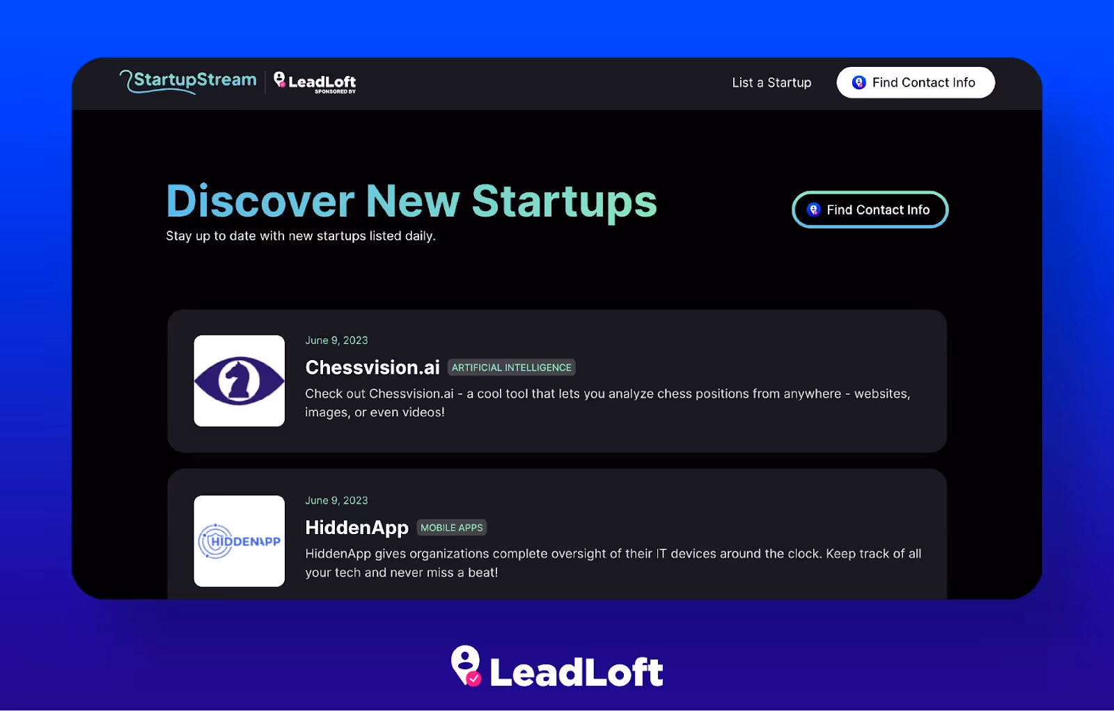 And if you happen to be someone looking to sell to these startups, check out LeadLoft. We can help you uncover contact info and get in touch with practically any startup and even convert many of them into paying customers. If you'd like to learn how we can help, book a time with our team here.