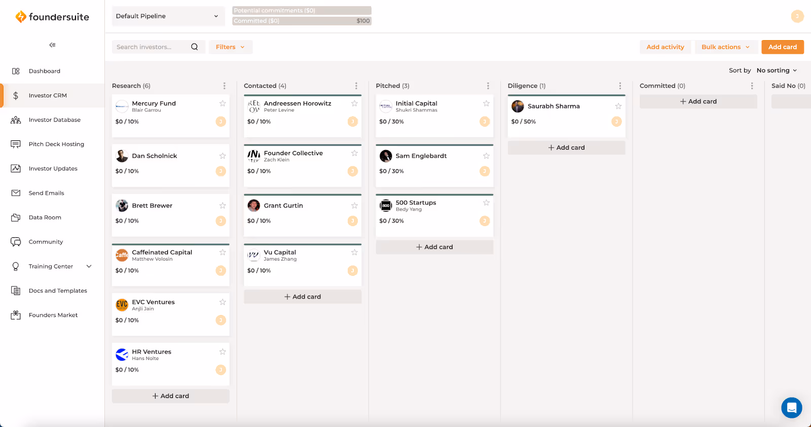 On the other hand, if you're looking for a more general, barebones CRM to track investor interactions and send occasional updates, Foundersuite could be a good fit. Its all-in-one approach is interesting, but it does come with some limitations in terms of email integration and outreach capabilities.