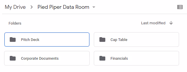 The easiest way to set this up is by using a Google Drive or Dropbox folder, or one of Docsend’s specialized products.