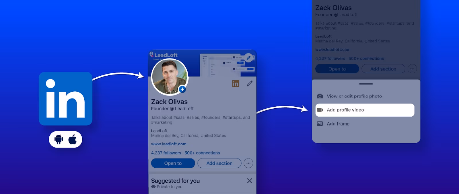 It's important to note that you cannot add a LinkedIn profile video from a browser; you'll have to do it from a mobile app.