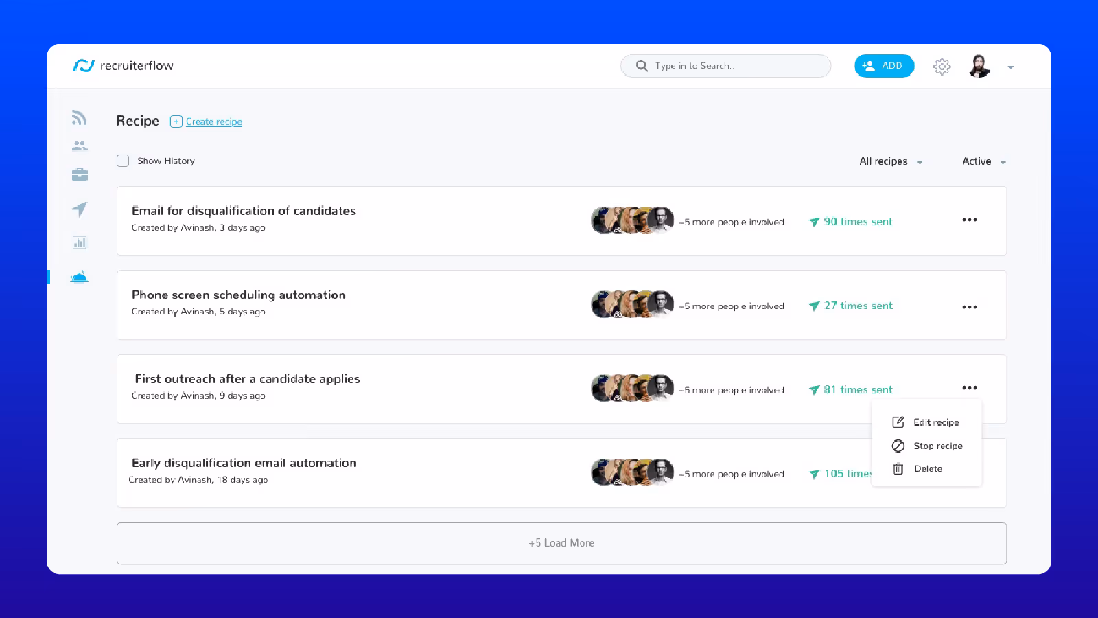 Recruiterflow is a modern applicant tracking system (ATS) built with LinkedIn recruiting in mind. It helps recruiters manage candidate pipelines, automate tasks, and track progress all in one place.