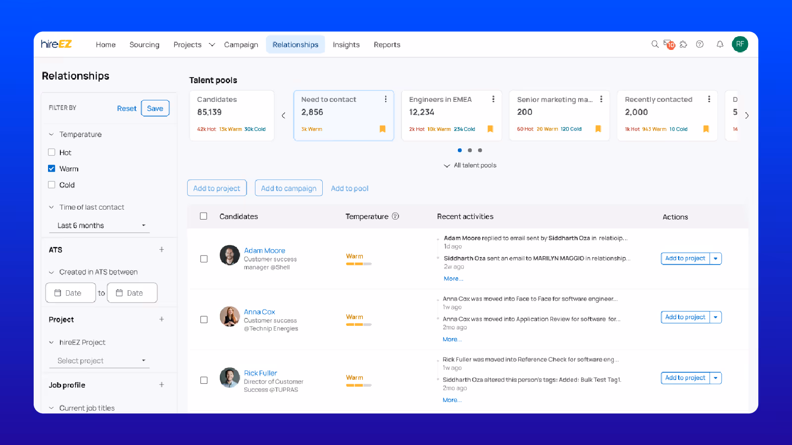 - Advanced Search Filters: Pinpoint passive candidates quickly.