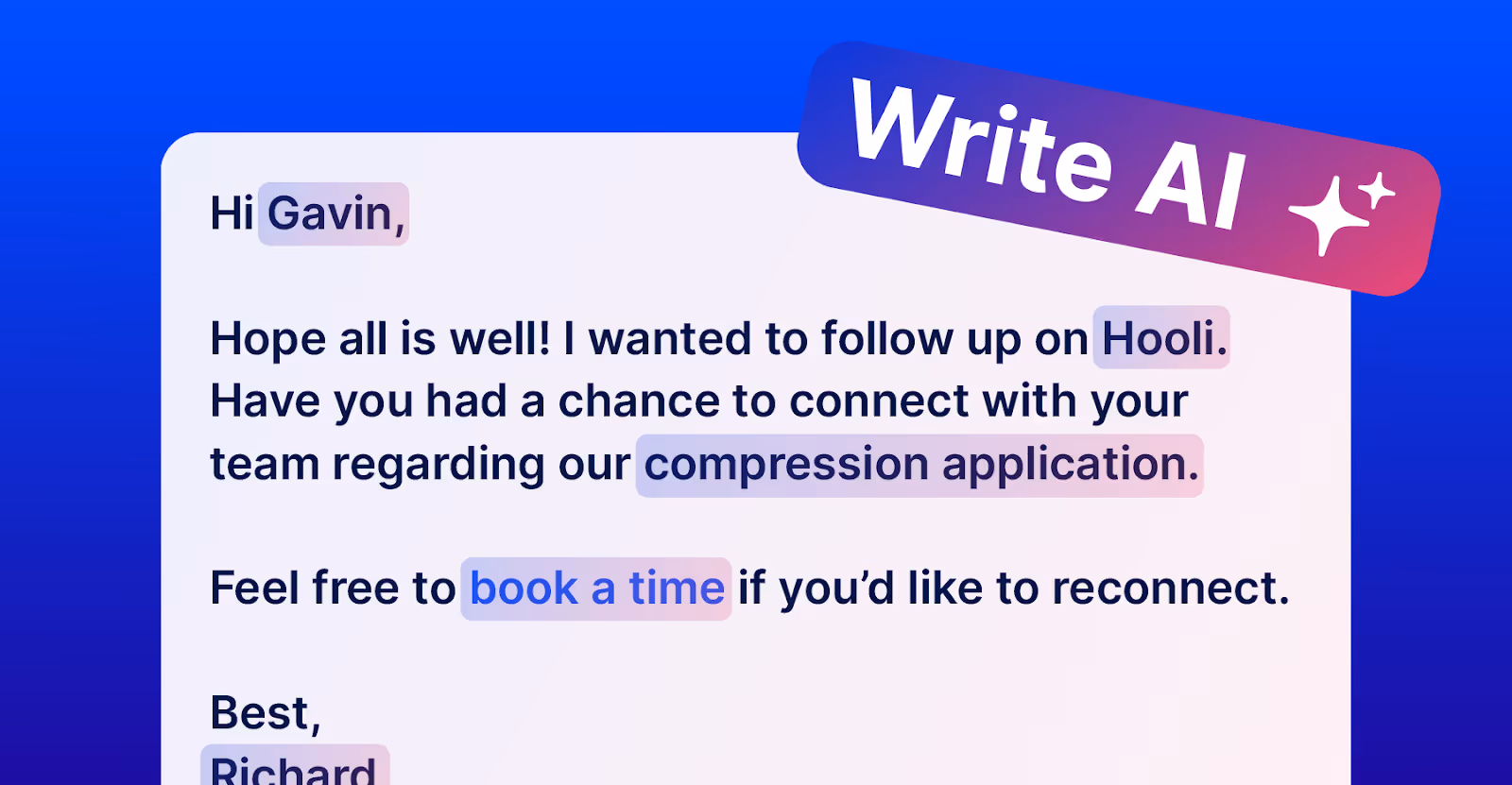 The AI Writer doesn’t just help you write emails. It makes sure every message is hyper specific and perfectly tailored to you, your prospect, and the current conversation.