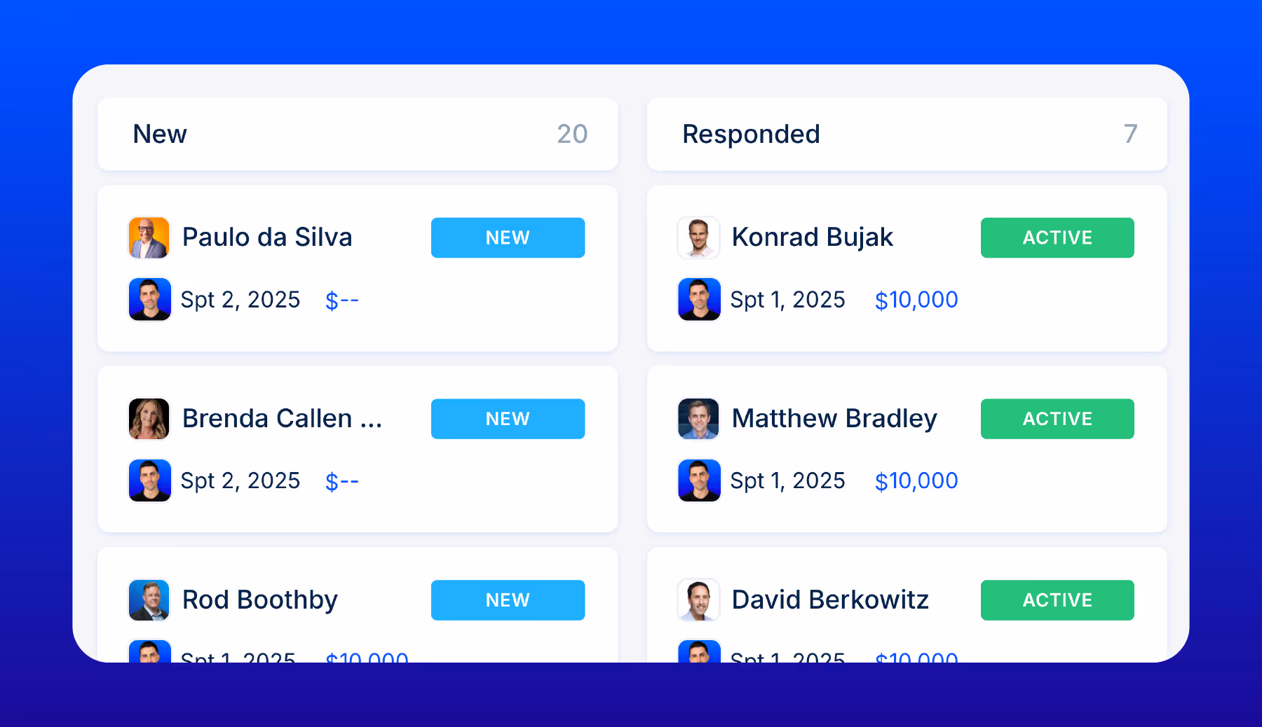 Instead of seeing company logos and business names, your pipeline will now reflect contact profile photos and individual names.
