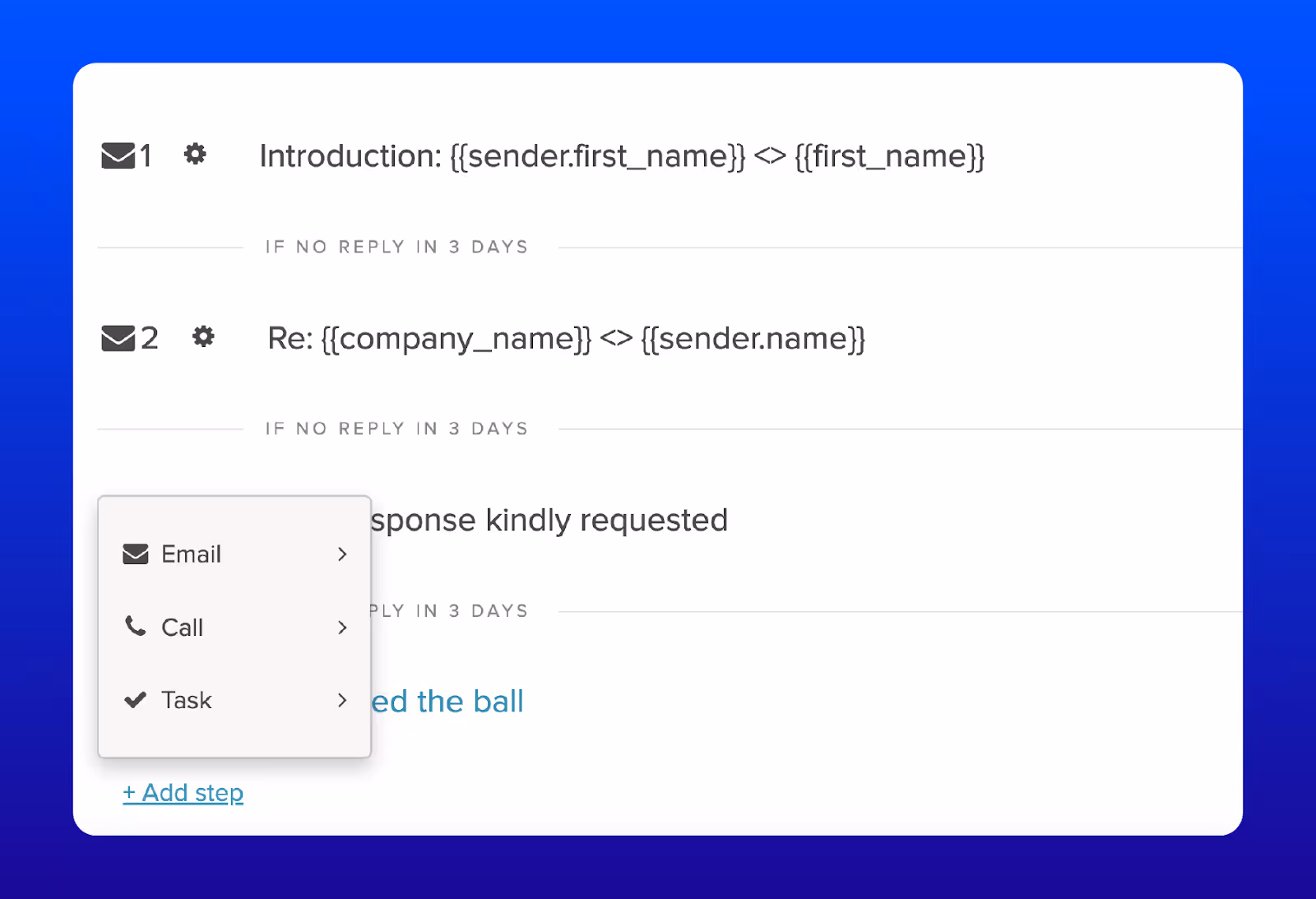 It allows you to create email sequences, schedule follow ups, and even add manual tasks like phone calls.