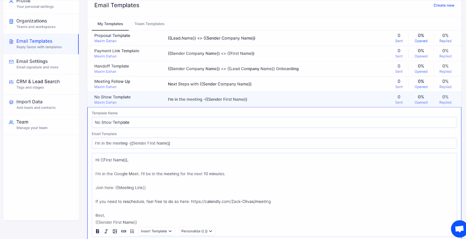 For the ultimate time saving hack, we recommend you upload these templates to your favorite CRM like LeadLoft. Having all your templates in one place lets you test and compare the open and reply rates of each template, then tweak them as needed.