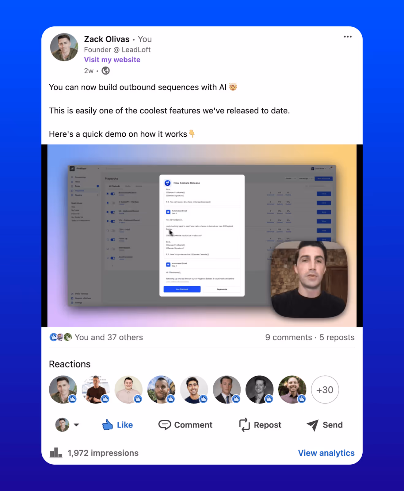 Since LeadLoft now supports LinkedIn outreach, we've also taken it upon ourselves to run cold email and LinkedIn outreach in tandem. And now we’ve found tons of success from both these channels.