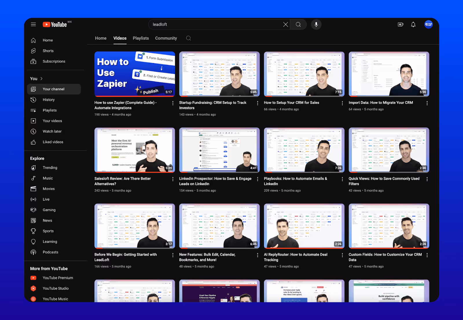 YouTube videos have been a pretty great channel for us, and we're starting to see more and more traffic come from LeadLoft’s Youtube channel.